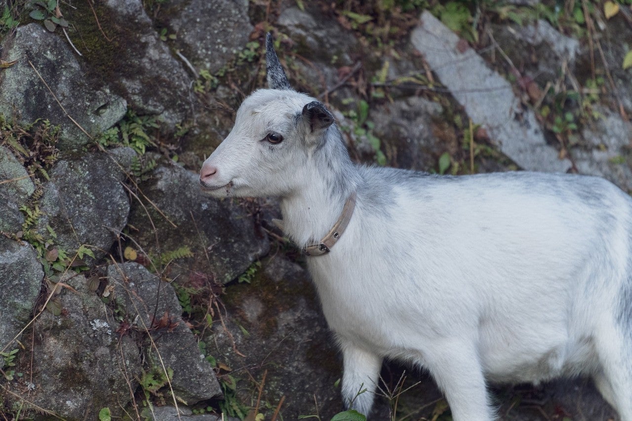 魚留の滝の近くにかわいいヤギがいました。